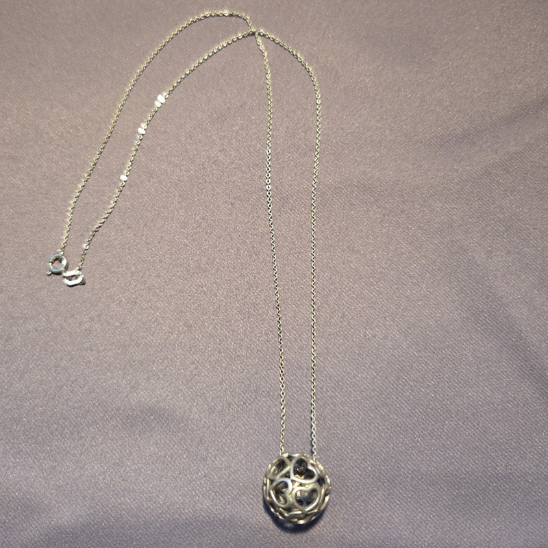 Ketting met zwarte hangerKetting met zwarte hanger. Lange metalen ketting.